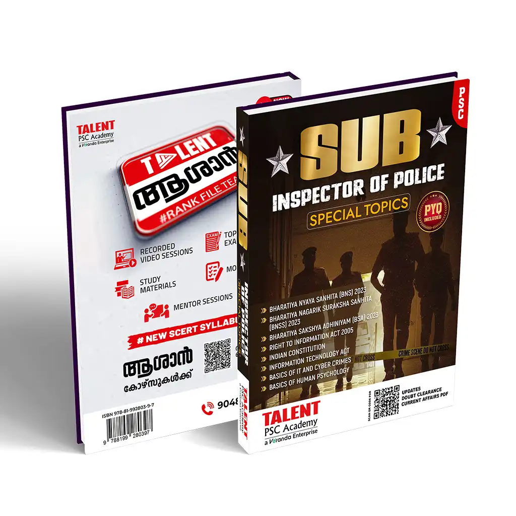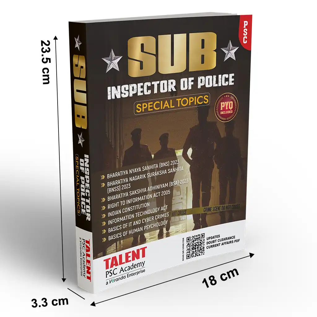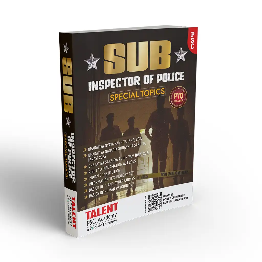 Talent Academy Sub Inspector of Police Special Topics 2025–2026 is a complete Kerala PSC SI Exam Preparation Book designed for aspirants aiming to qualify upcoming Sub Inspector and Civil Police Officer examinations. This updated edition includes detailed study materials, concept-based notes, and previous year questions (2023–2025) strictly following the latest Kerala PSC syllabus.